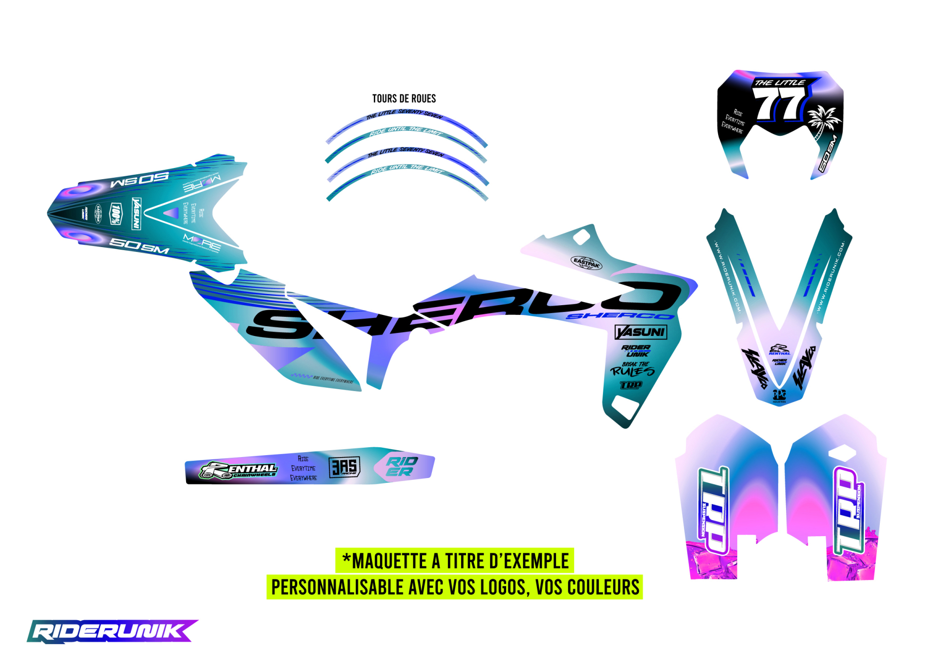 Transformez votre Sherco 50 SM avec ce kit déco RiderUnik au design moderne et agressif.