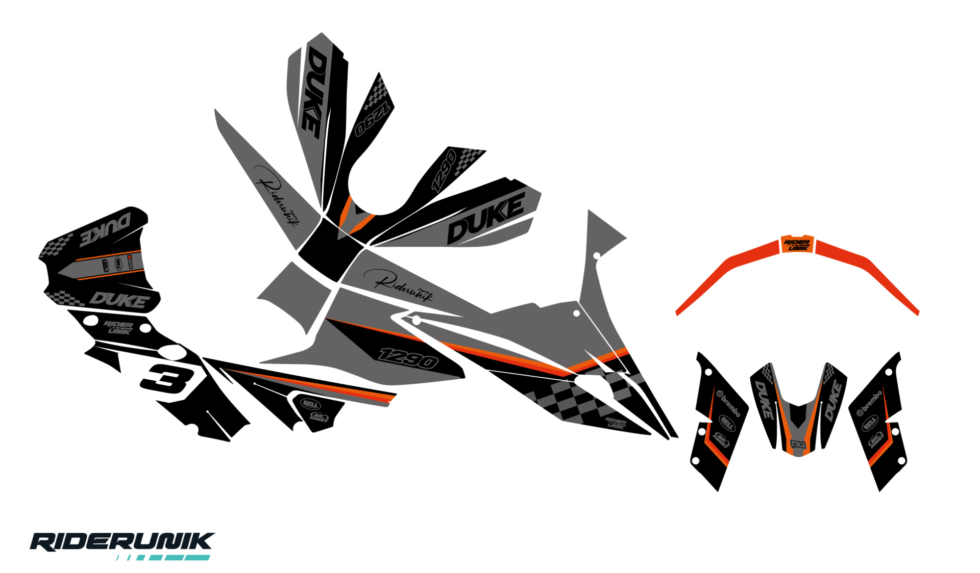 Kit déco complet RiderUnik KTM Duke / Superduke Check Noir