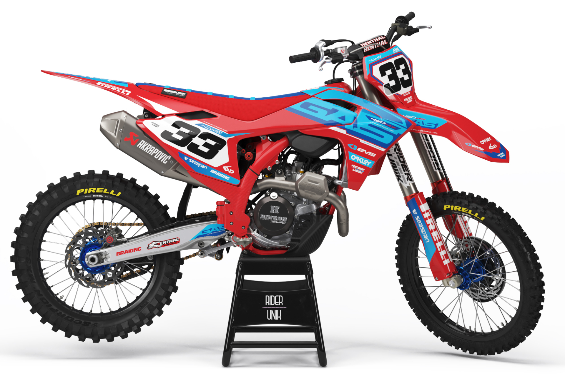 Stickers rectangulaires avec votre nom + numéro + marque de la moto, à coller sur vos moyeux de roues.